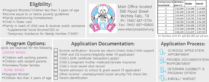 North Texas Parent and Child Development, Inc. Early Head Start We are a non-profit organization empowering children and families through education. EHS provides early, continuous, intensive and comprehensive child development and family support services to low-income pregnant mothers, infants and toddlers of Wichita County at no cost to families. |